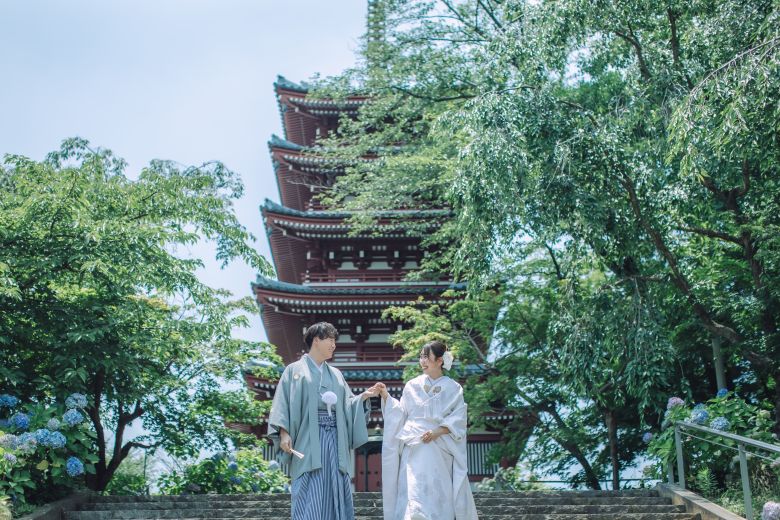 千葉の神社寺院・城でウェディングフォト撮影できるロケーションが1件。掲載地以外でも、想い出の場所からご実家など、好きな場所への出張撮影も可能です。