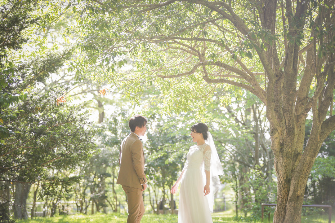 野生植物を集めた植物園は、豊かな自然に衣装が映える撮影スポットです。豊かな緑を中心に、桜・アヤメ・アジサイ・新緑・紅葉と四季折々の撮影が楽しめます。ケヤキが空に向かって大きく腕を広げる芝生広場はドレスとの相性抜群です。