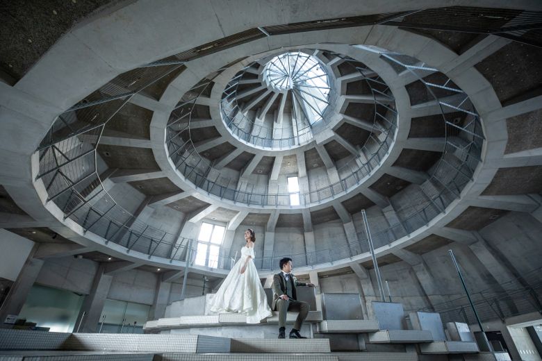 明治時代に設計された石作りの港が今も残るレトロな港町 三角港(みすみこう)。「海のピラミッド」はそのシンボルとして建っている三角の貝殻のような建築です。巻貝のような構造で、螺旋状のスロープで頂上に登ることもでき港を一望することも可能。海風を感じて撮影を楽しめる撮影スポットです。