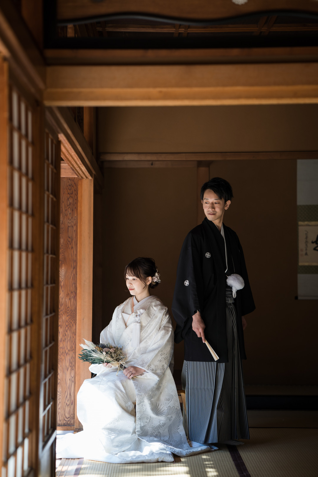 松代城址で唯一、江戸時代末期に真田幸教が建てた1864年当時のまま残っている貴重な建物です。屋敷入口には真田家の六文銭があり、長い廊下が続く屋敷内では畳や縁側での撮影が可能です。縁側から望める庭園内には散策エリアがあり、座観式庭園の四季の風情も見どころです。長野市周辺で歴史の息吹を感じたいおふたりにおすすめです。 ラヴィファクトリー 長野店から約30分とアクセスも良いです。