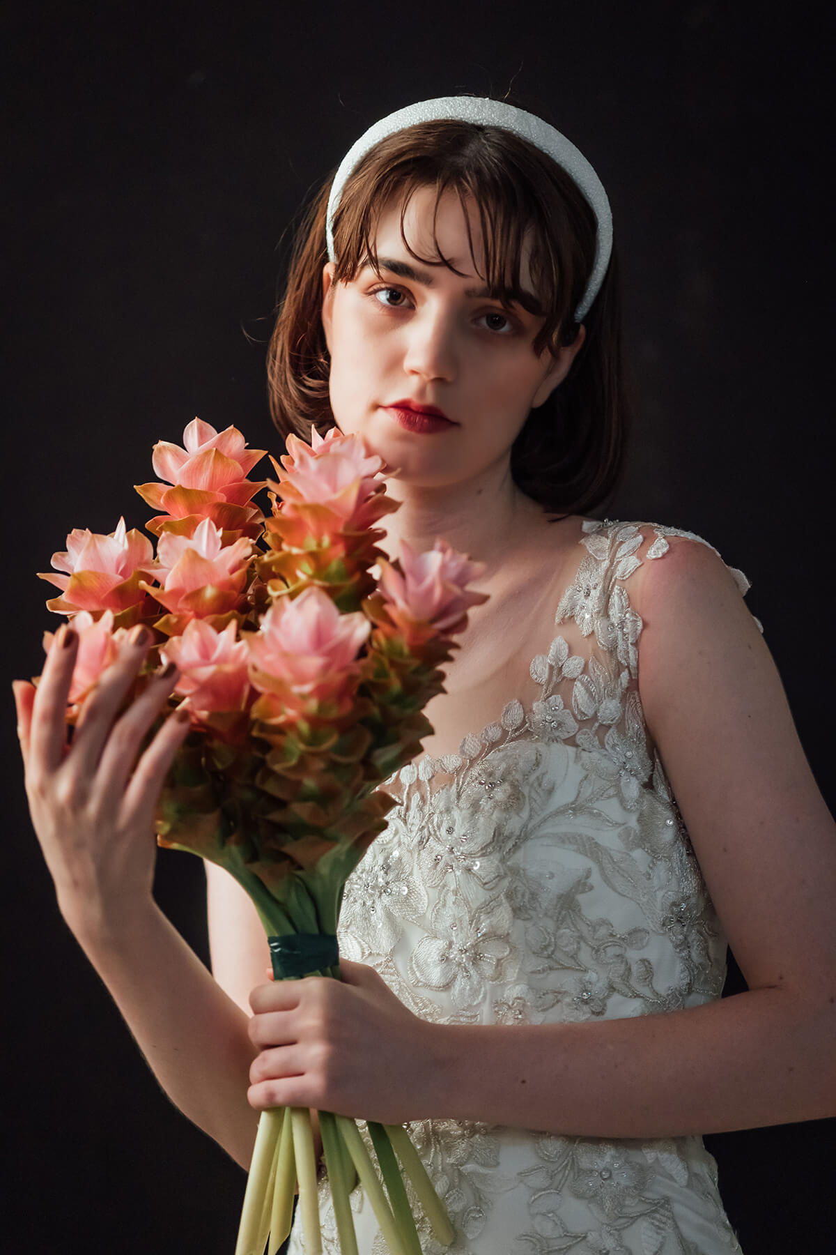 シルバー糸をふんだんに織り込んだリーフ風のエンブロイダリーレースを贅沢に纏った総レースのマーメイドドレス。緻密に計算されたレースのレイアウトでマーメイドならではのバランスのいいメリハリのあるシルエットをより優美に見せてくれます。凛とした美しさを引き立てるリュクスなマリエです。
