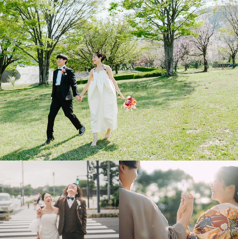 2着のドレスで、全国の四季折々の美しいロケーションや街並みで素敵な瞬間を残しましょう。