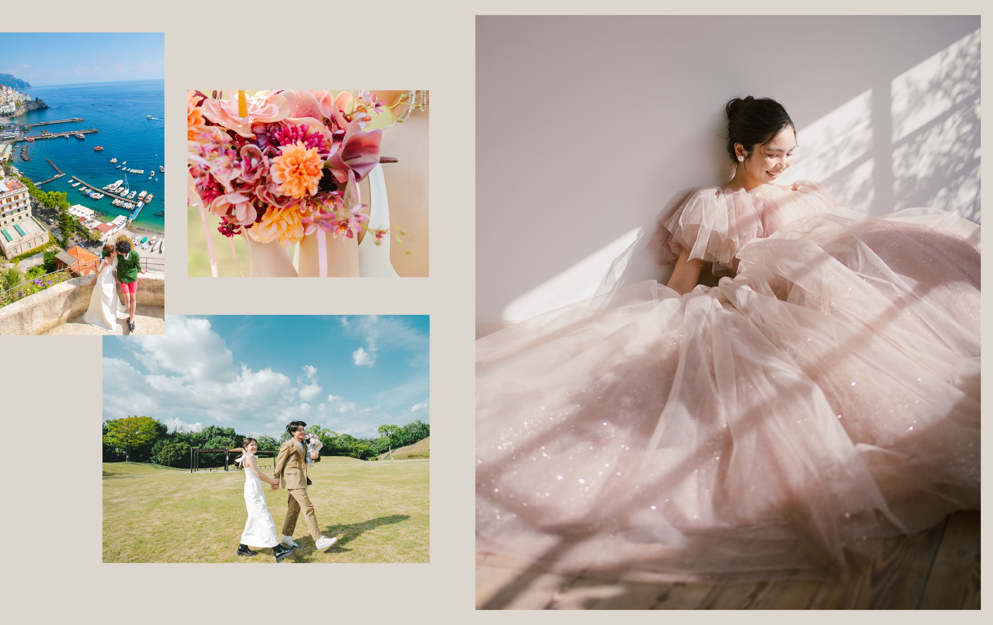 2着のドレスで、全国の四季折々の美しいロケーションや街並みで素敵な瞬間を残しましょう。