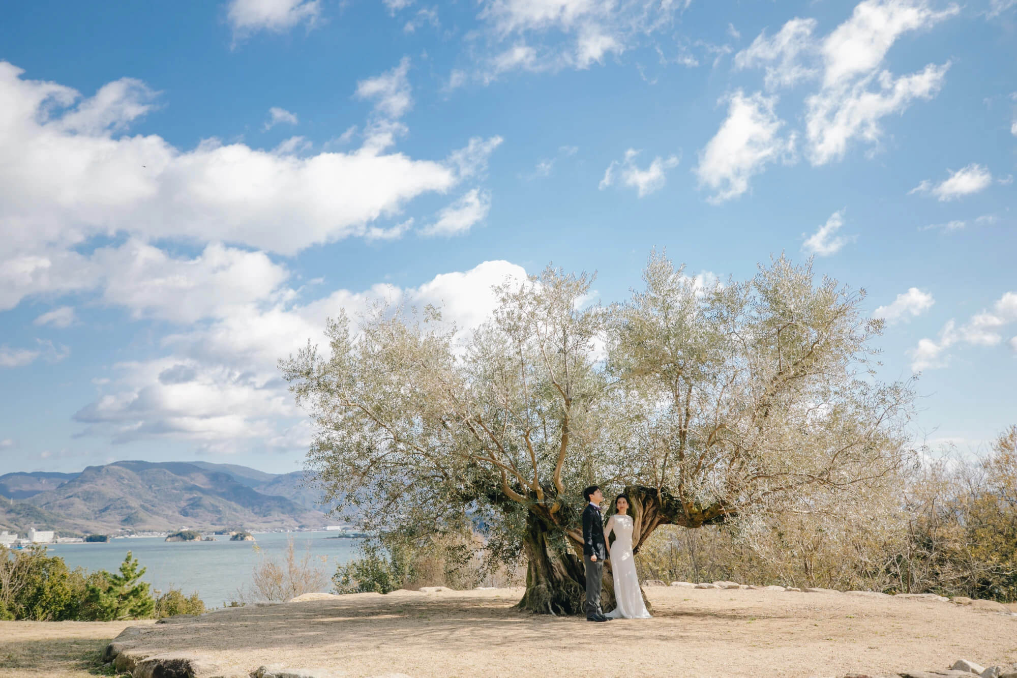 エンジェルロードを部屋から眺めることができる「ラ・クラッセ エンジェルロード」での撮影から、小豆島のとっておきのロケーションで非日常的な体験を楽しめるフォトウェディング。