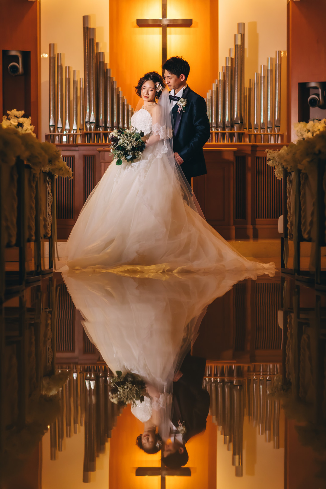 木のぬくもり感じるあたたかな空間が広がるチャペル。大理石のバージンロードはウエディングドレスのお姿がより美しく引き立ちます。時を重ねても色あせない、特別な思い出があふれる場所となるように。これまで多くのカップルを見守ってきた正統派のチャペルが、おふたりの新たな思い出をかたち作ります。